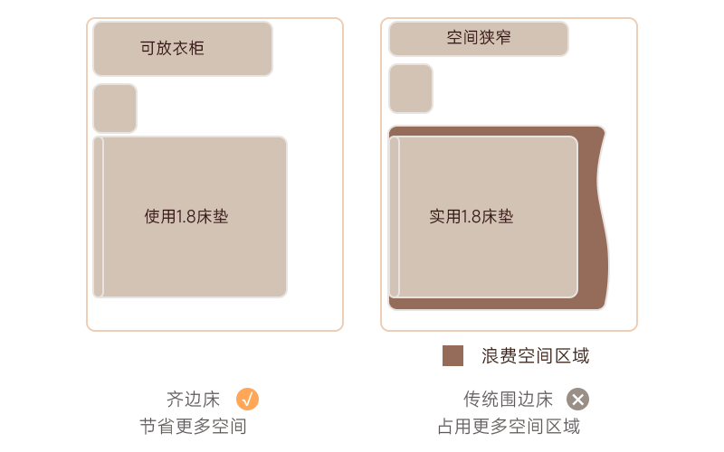 相比传统臃肿围边床型,节省约1.5㎡