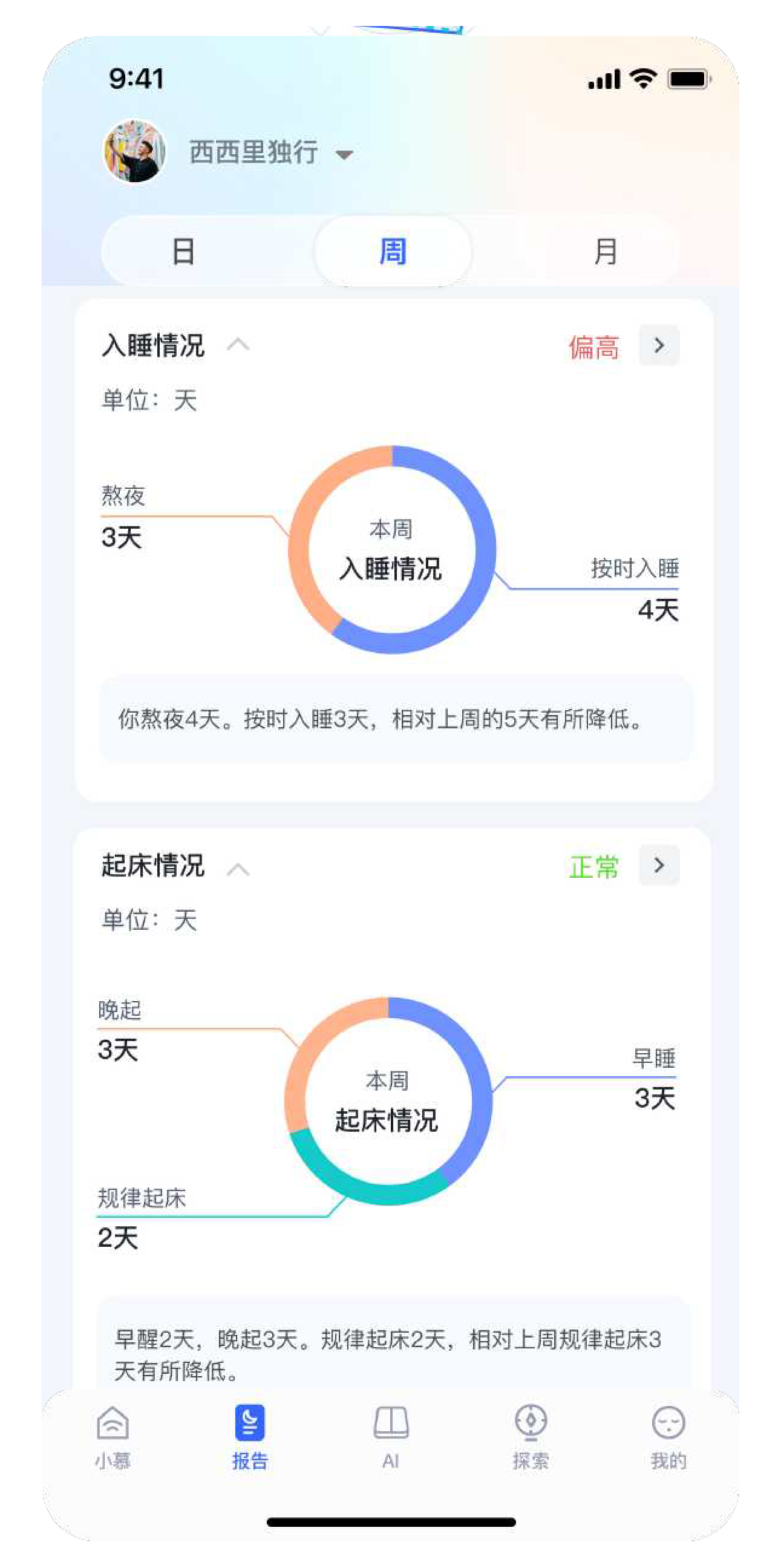 状态和趋势,更好的管理生活作息规律。